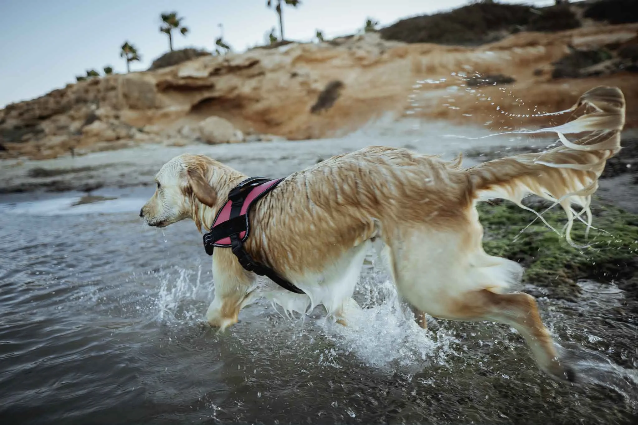 a dog with a tree branch from sea